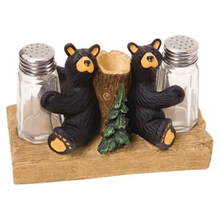 Two Bears and a Log Salt & Pepper Shaker Set